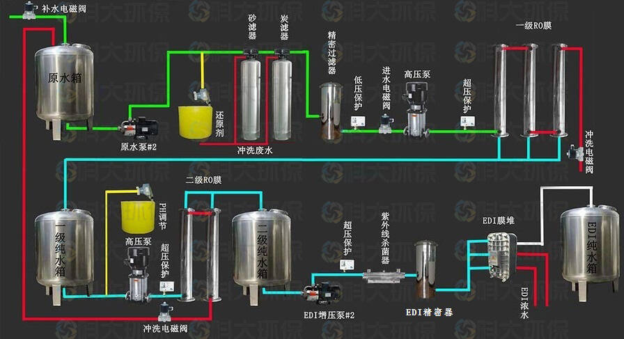 電阻率≥18MΩ·cm(常溫下25°C)預處理+二級RO+edi裝置+拋光混床