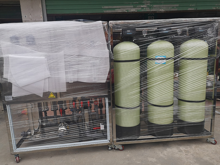 自來(lái)水---->原水箱---->供水泵---->多介質(zhì)過(guò)濾器---->活性炭過(guò)濾器---->軟化過(guò)濾器---->保安過(guò)濾器---->高壓泵---->反滲透機(jī)組---->純水箱---->恒壓輸送系統(tǒng)---->用水點(diǎn)